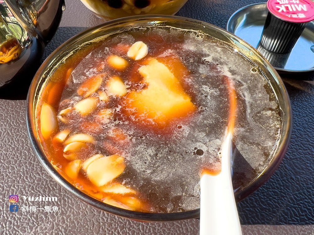 配料有珍珠及花生,珍珠偏大顆的那種蠻Q彈的,花生吃起來感覺是手工煮的