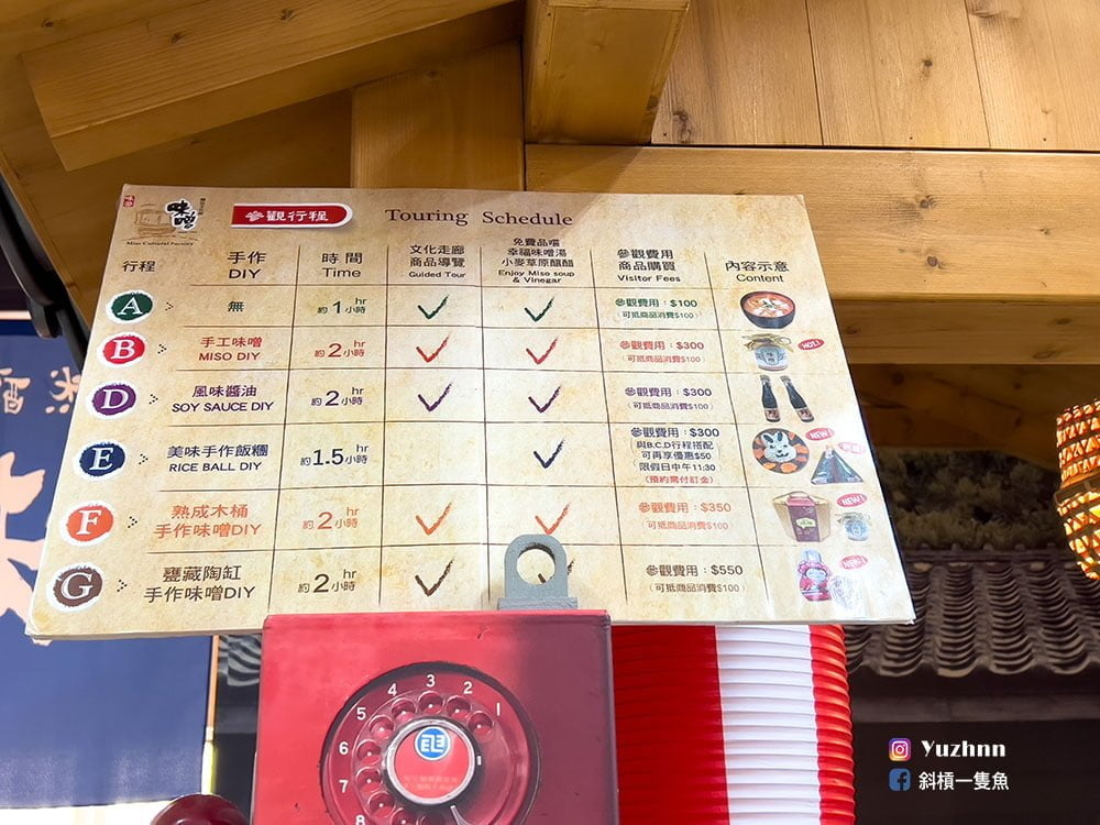 台灣味噌釀造文化館除了可以買東西也有不同的活動,總共有6個不同的方案,