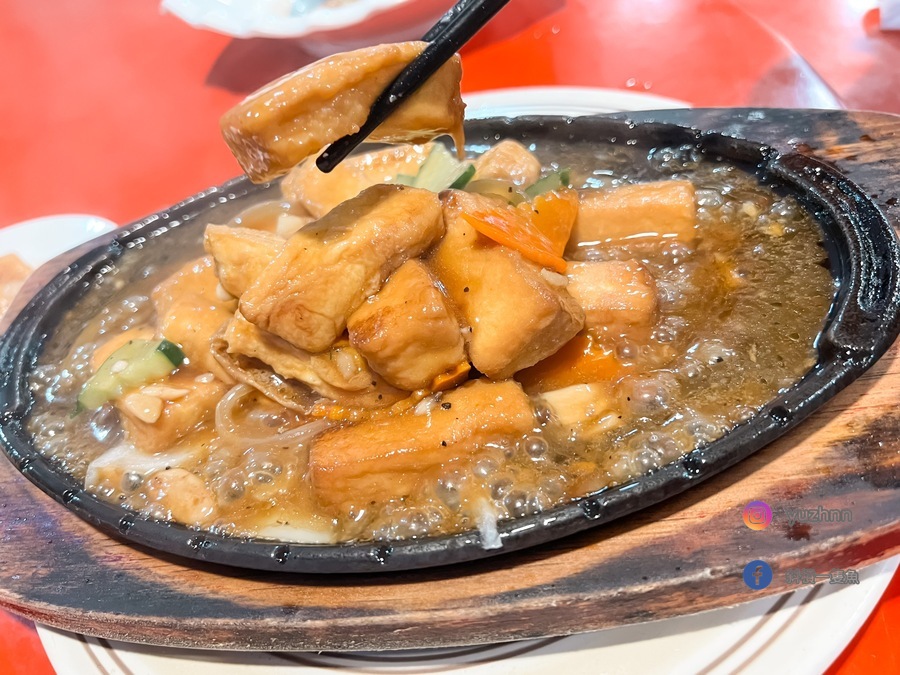 豆腐煎至金黃,搭配特調醬汁,來的時候加熱的鐵盤還會滋滋作響